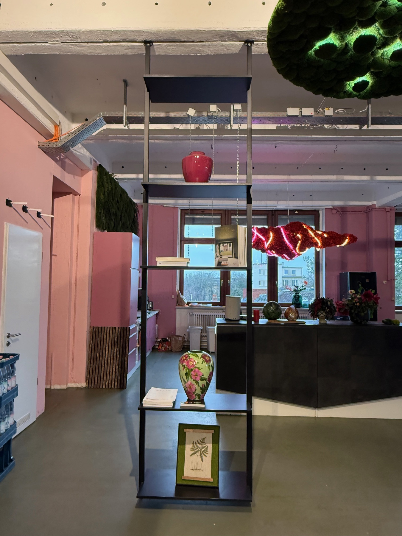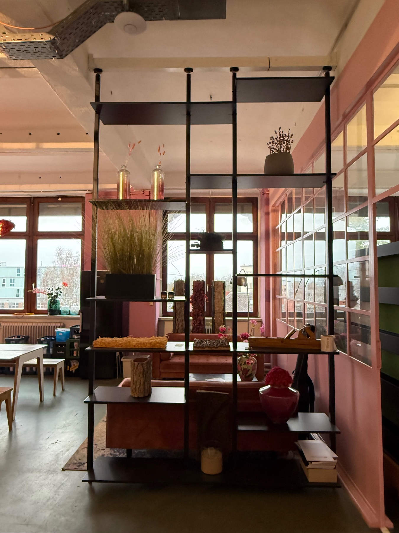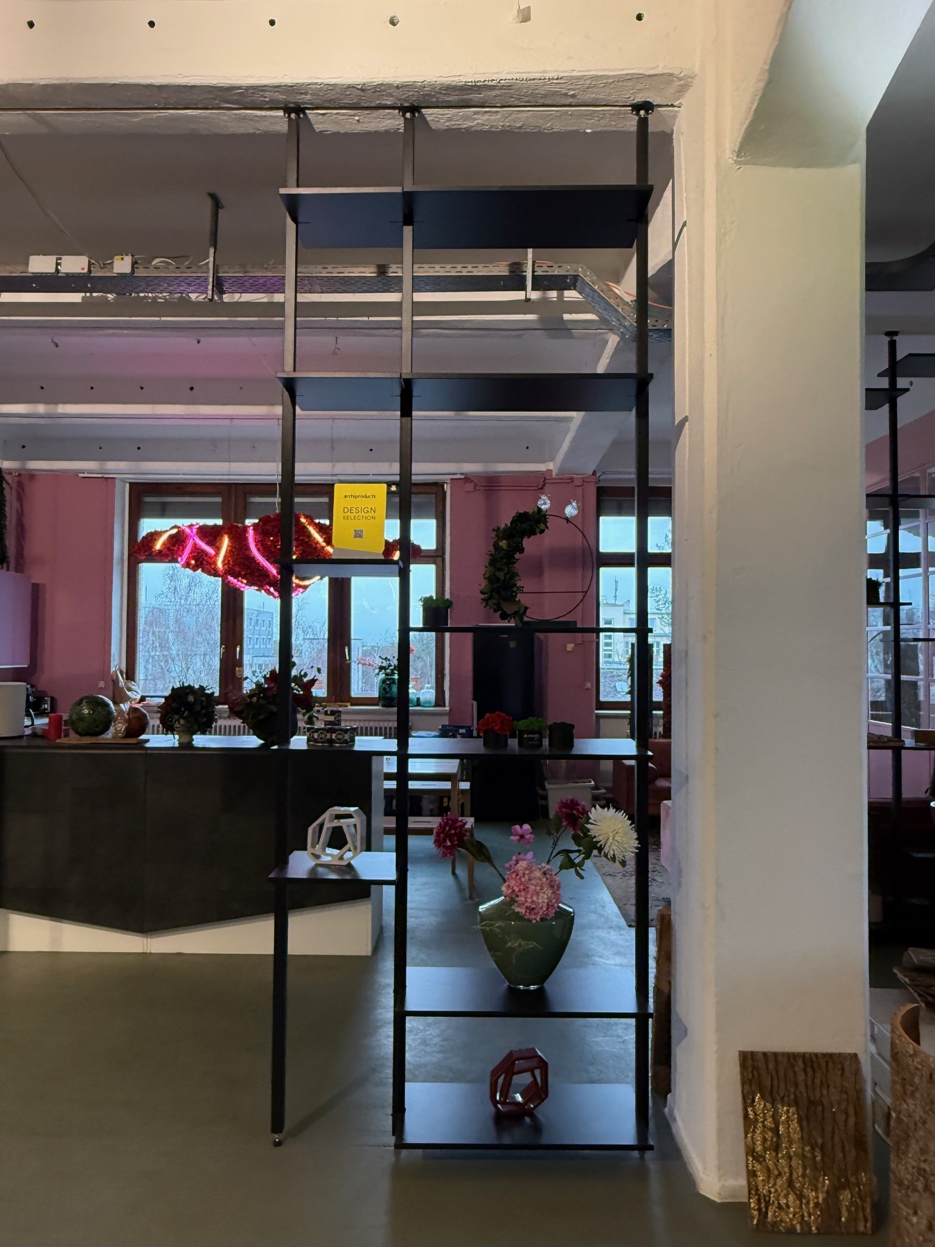 3 freistehende Regale mit Teleskopstangen aus schwarz lackiertem Edelstahl