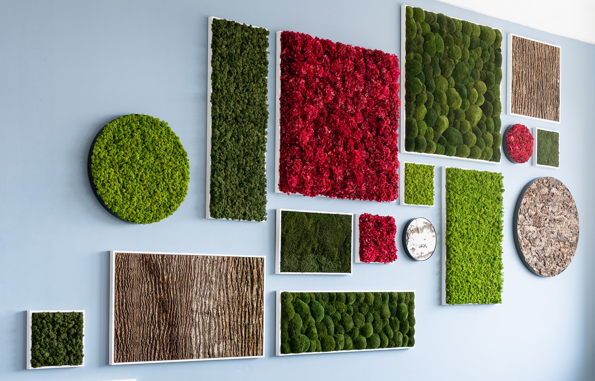 Darüber hinaus haben vor allem unsere Moose eine schallabsorbierende Wirkung, die den Geräuschpegel im Raum besonders im Sprachbereich bis zu 90% verringern kann. Die direkte Nähe zu Naturmaterialien wirkt beruhigend, teilweise sogar heilend auf die menschliche Psyche.