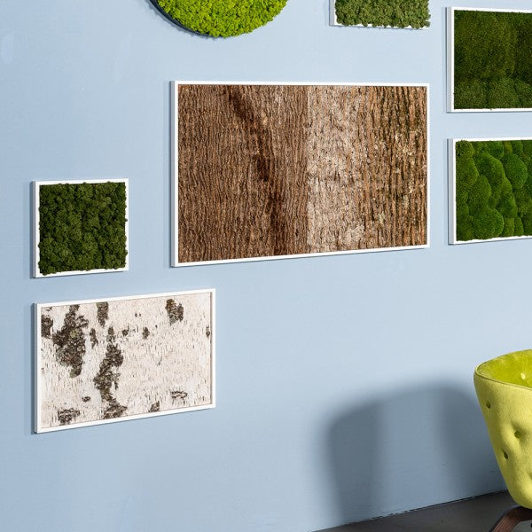 Unsere Rindenbilder bestehen zu 100% aus echter, natürlicher Rinde. Nachdem sie behutsam abgeschält wurde, erhält sie als Nebenprodukt der holzverarbeitenden Industrie neue Beachtung, anstatt entsorgt zu werden. Darüber hinaus entfallen jegliche Folgekosten wie Pflege und Erhaltung. Wir liefern die Produkte inkl. hochwertigem Rahmen und Befestigungsset.