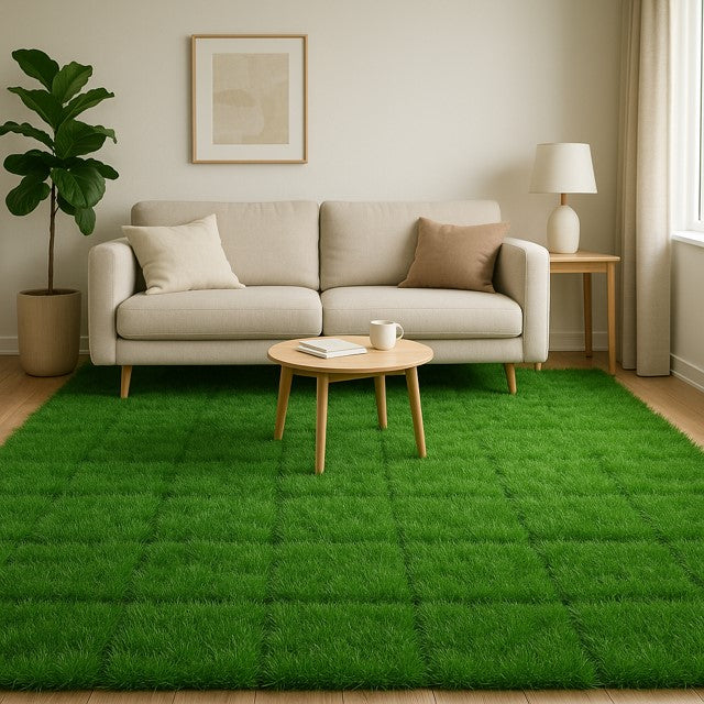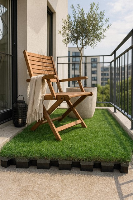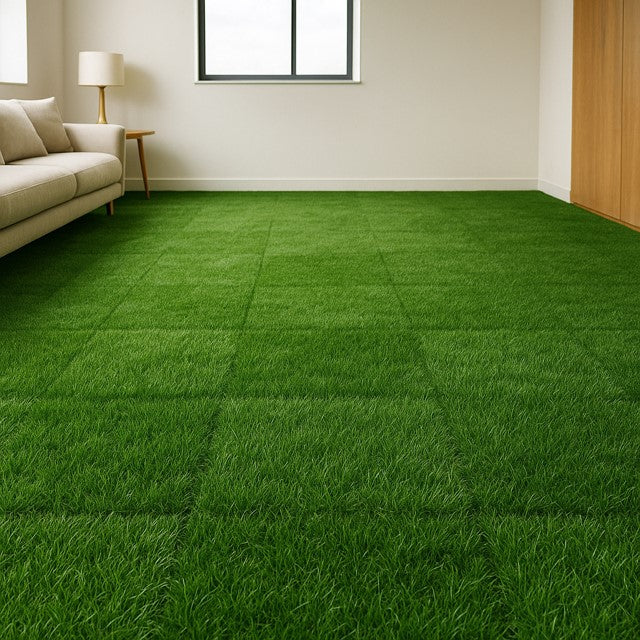 Sie erhalten beim Kauf dieses Produkts 12 Kunstrasen Elemente in einem Paket.